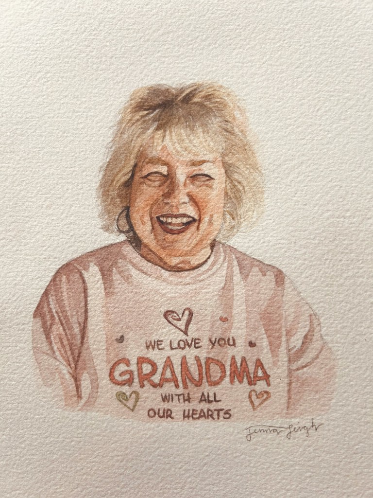 It was strange how each simple line I drew looked and felt so much like her, this face that I love, that I bear a resemblance to. I watched this representation of her come to life on the page, a special keepsake for her children and her children’s children. When we see it, we can remember the warm, rich, happy privilege of knowing her love. We can remember the sound of her laughter, and the way her eyes crinkled when she smiled. We can remember her fierce devotion to those she held dear.