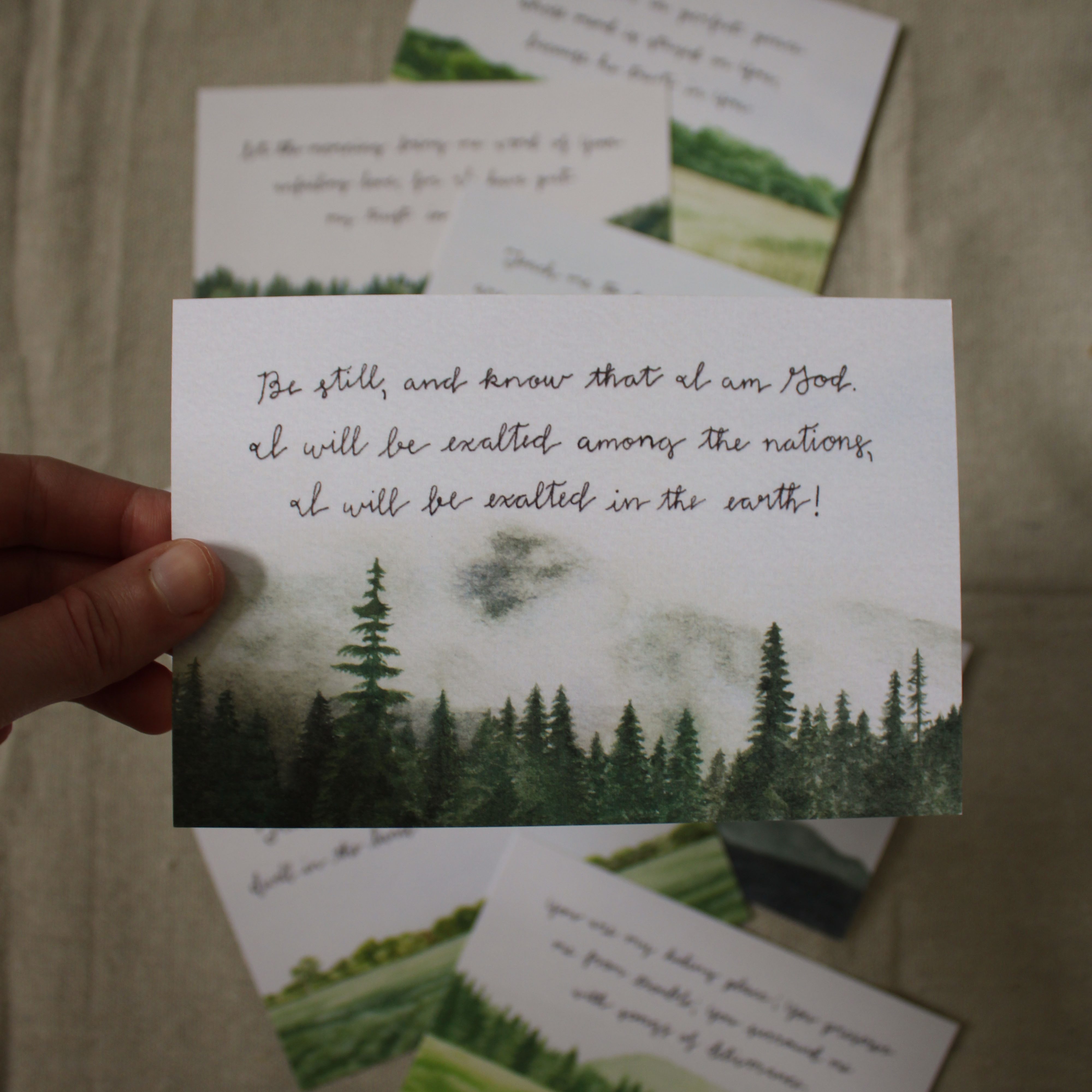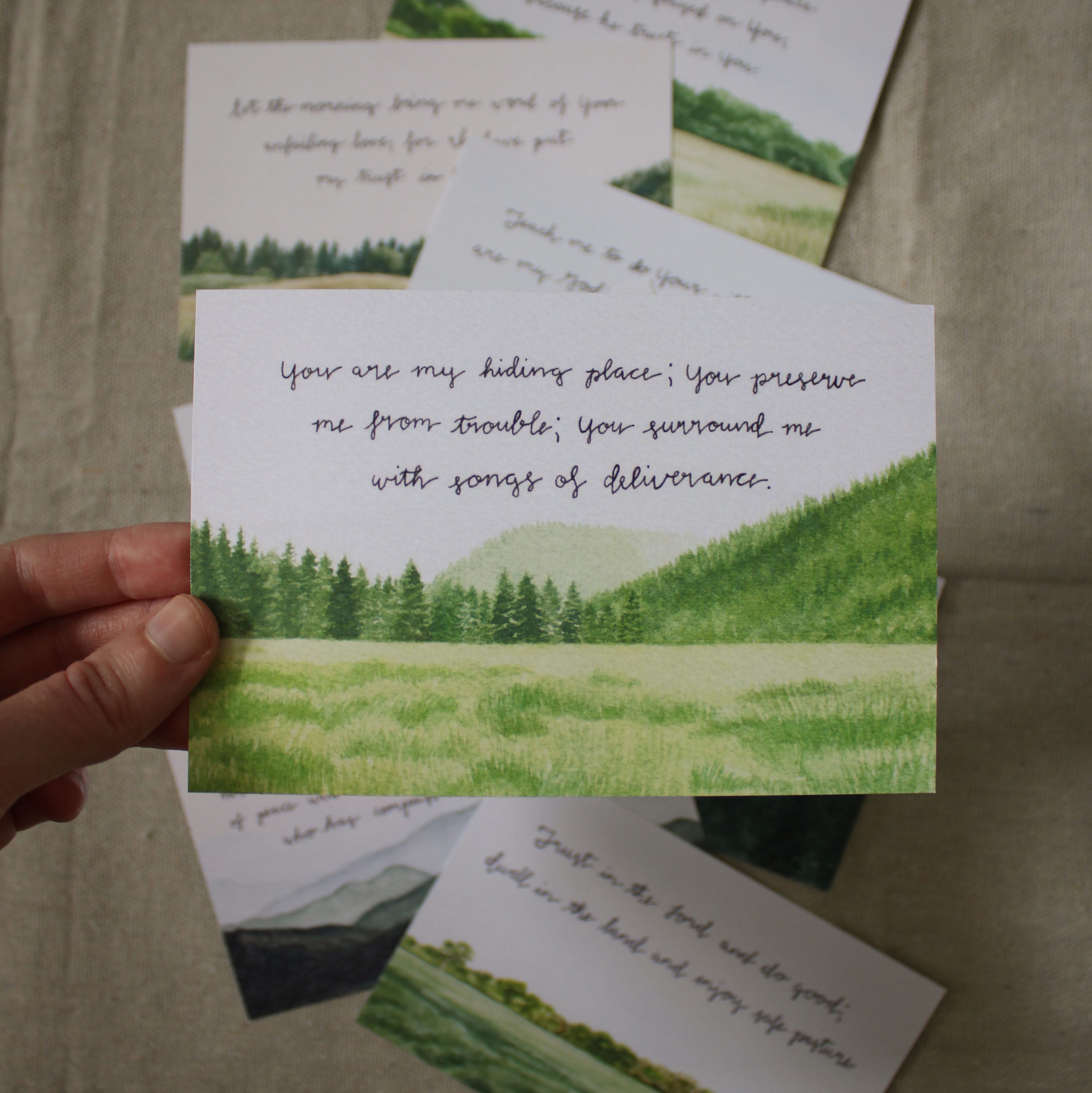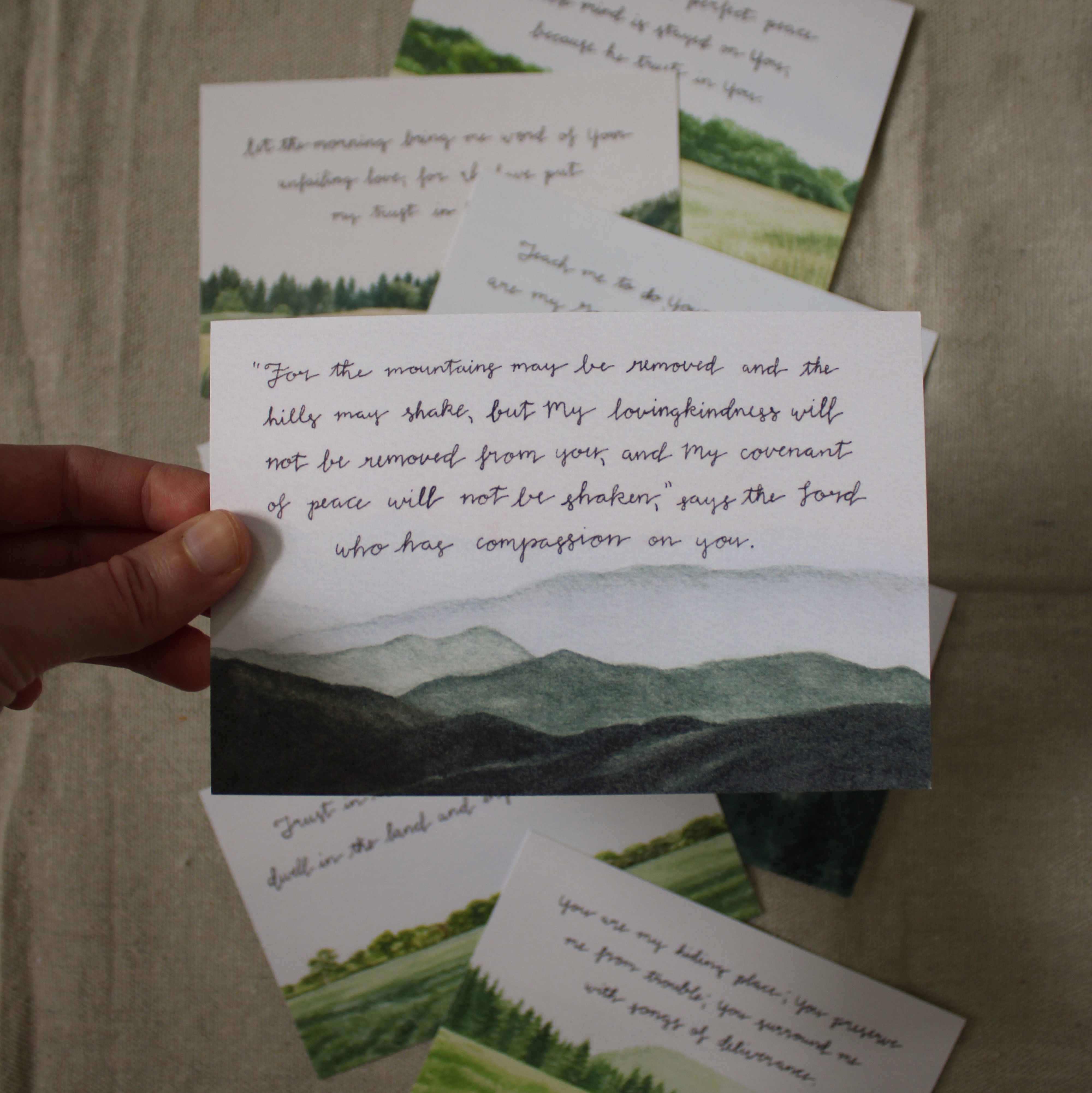eight watercolor landscapes paired with encouraging Bible verses
