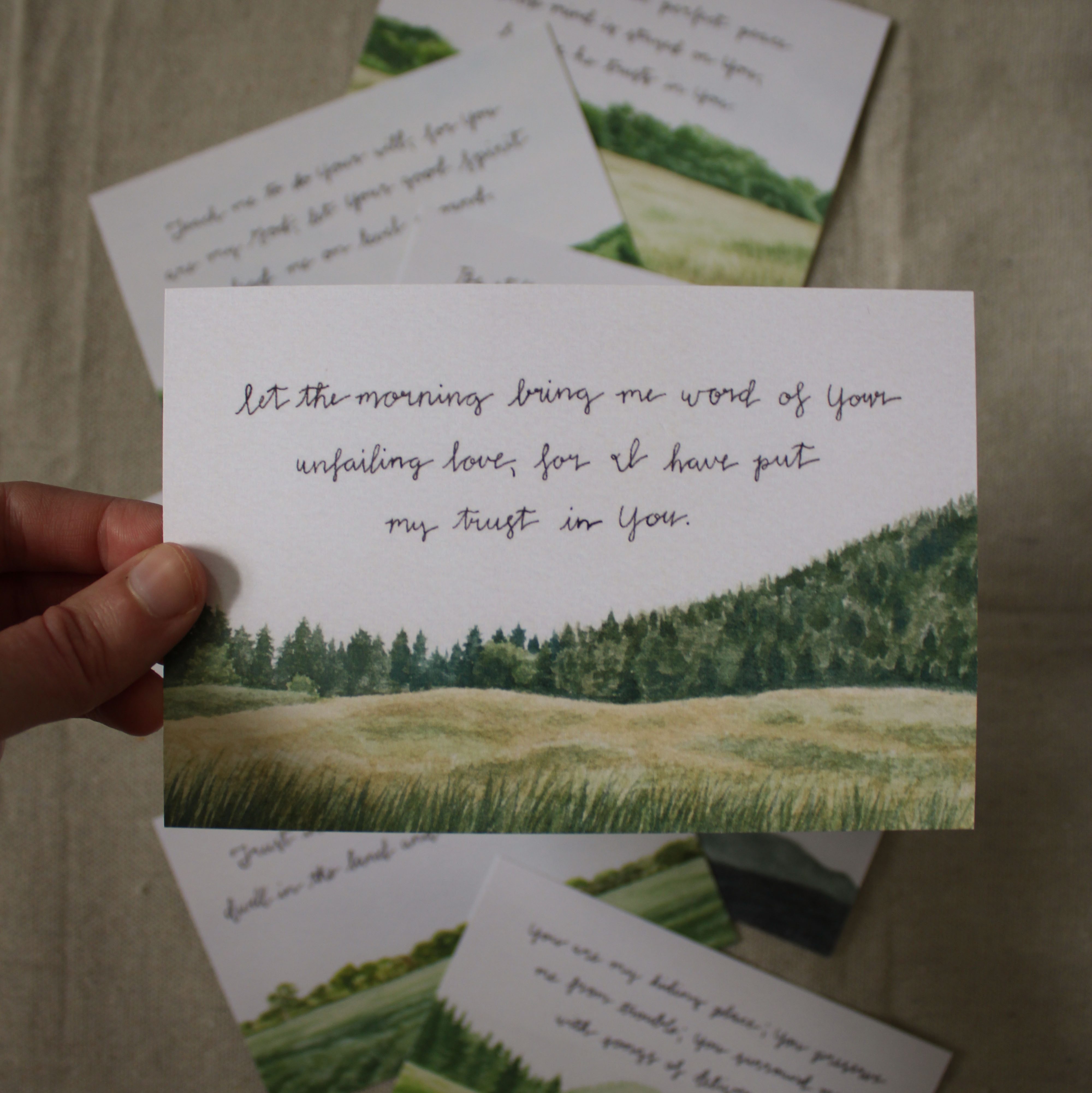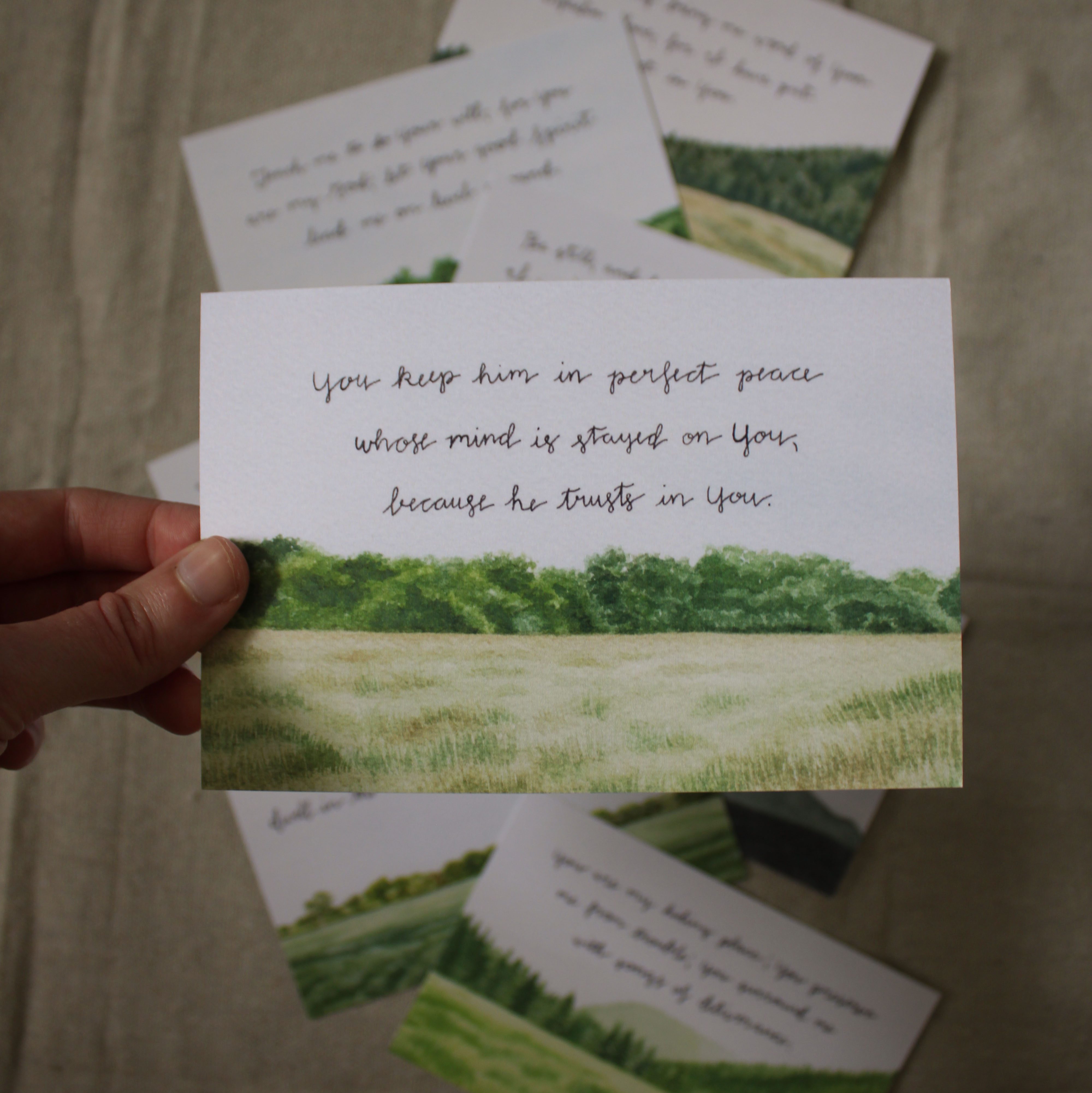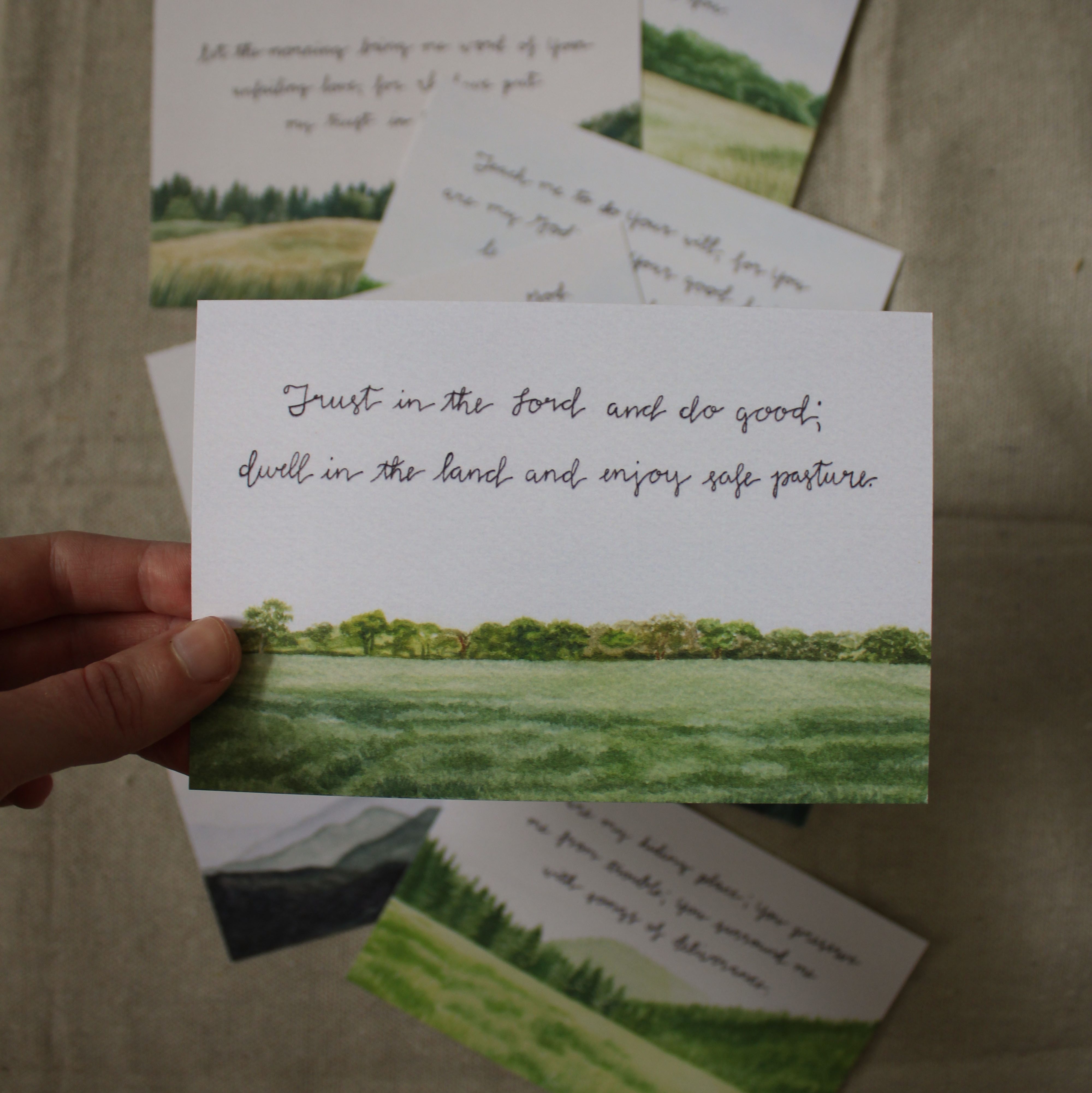 eight watercolor landscapes paired with encouraging Bible verses