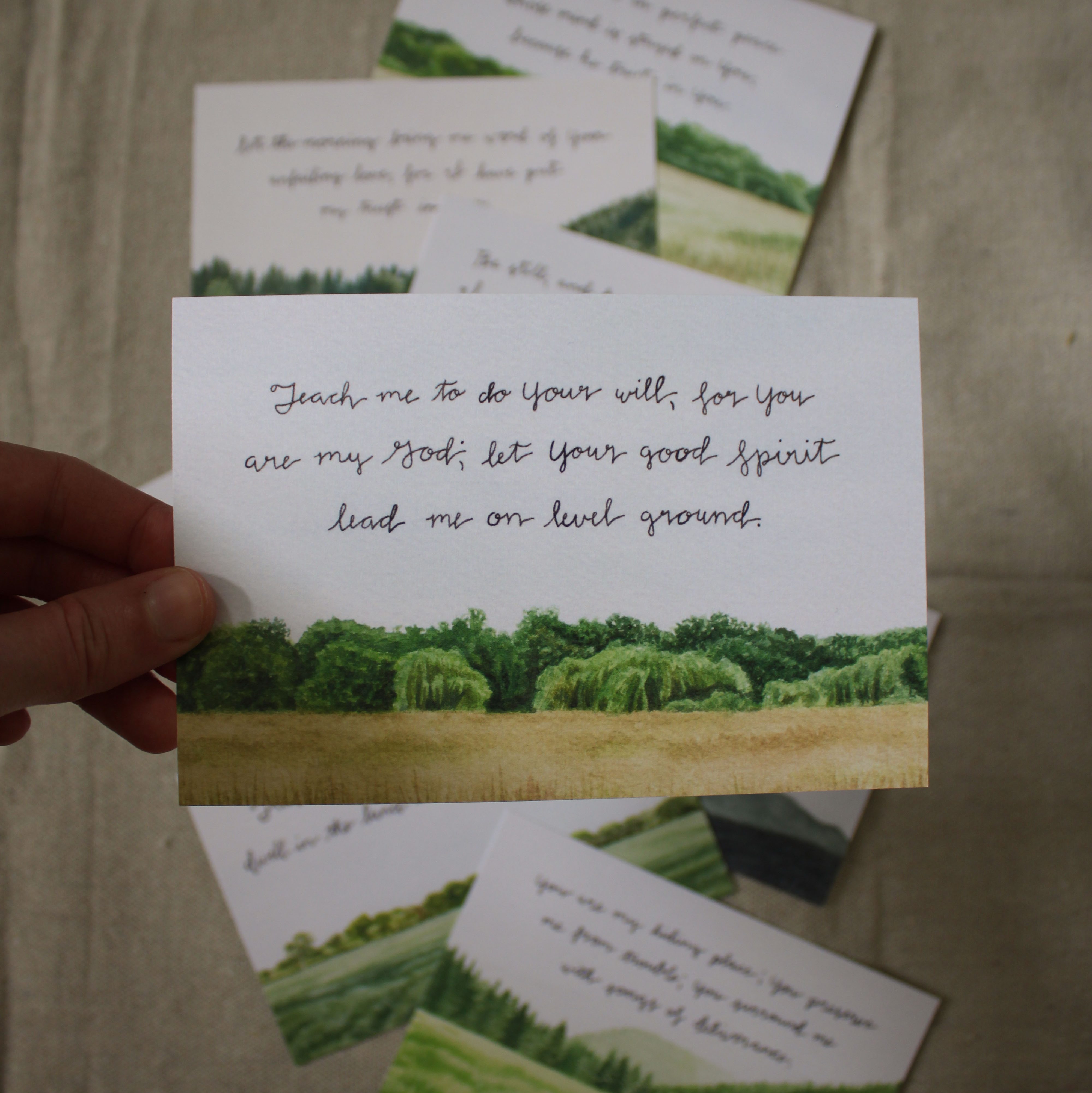 a collection of peaceful watercolor paintings inspired by Scripture
