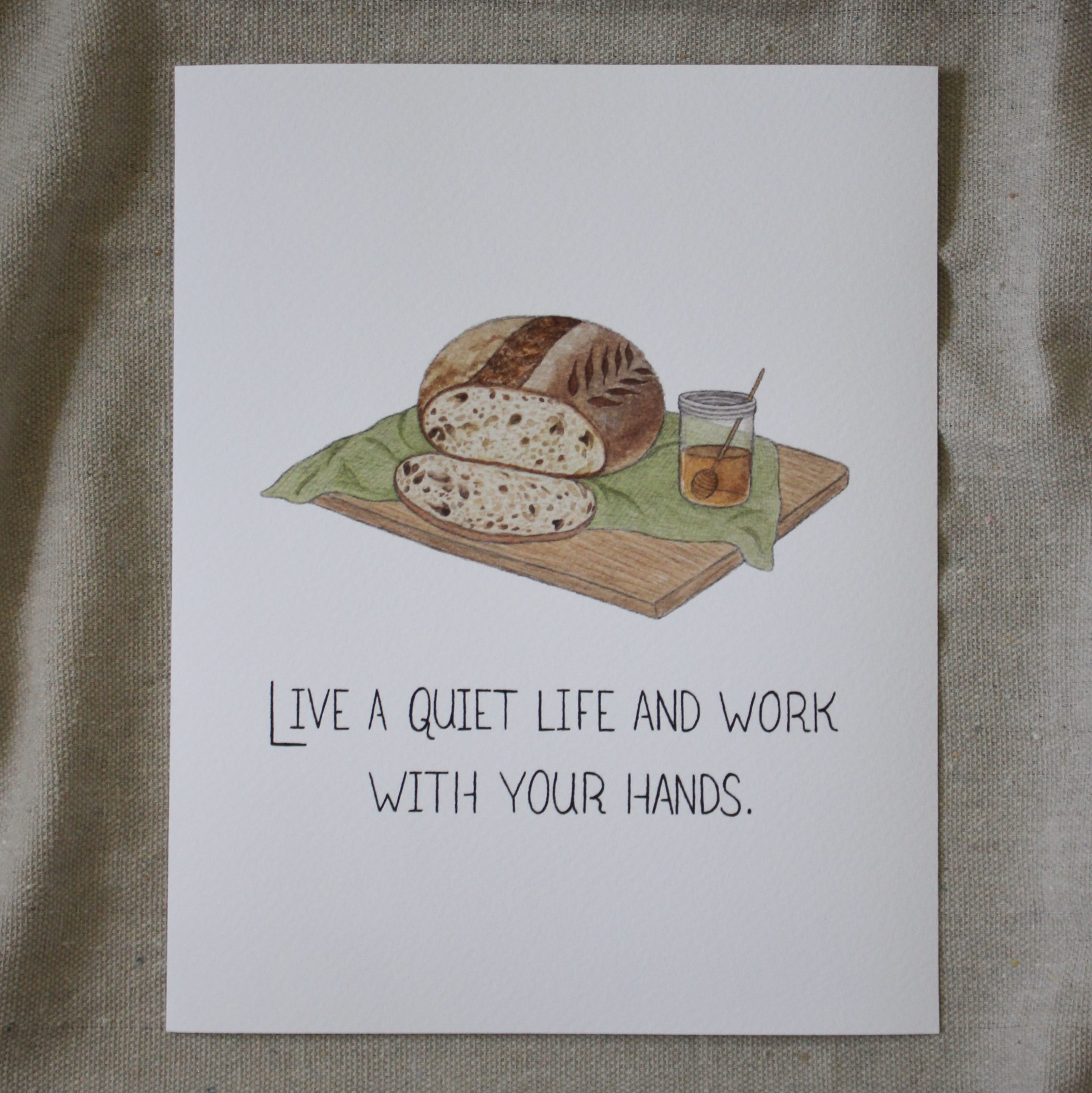 three watercolor paintings inspired by 1 Thess. 4:11